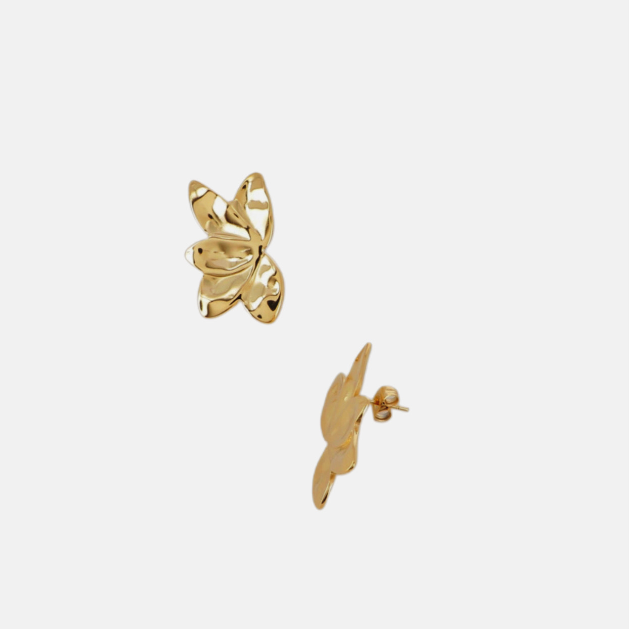 We love accessoires! Prachtige middel grote goudkleurige roestvrij stalen oorknopjes samengesteld uit een bloemenpatroon.